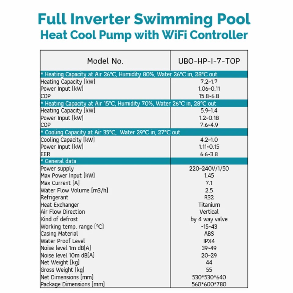 เครื่องทำน้ำอุ่น เย็น สำหรับ สปา สระว่ายน้ำ UBO-HP-I-7-TOP